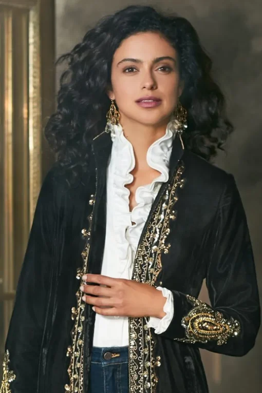 A regal blouse to grace dinner parties or special occasions. Stand ruffle collar with ruffled long sleeves and darts at the waist for shaping.