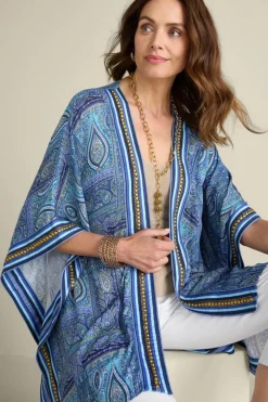 This moves-with-you silhouette stuns with its paisley patchwork print and striking stripes. And those gold embellishments? They don’t just shimmer, they add a hint of weight, giving this airy style beautiful drape. Wear over a tank, tee or long sleeves and pair with everything from jeans to leggings.