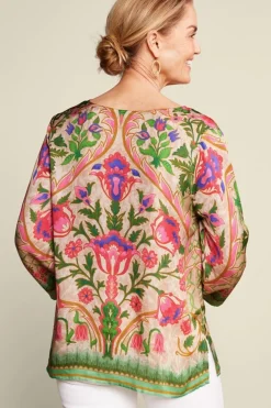 Vibrant florals, a subtle sheen and a bold contrast print, too? Just think of all the places you can wear this versatile V-neck with 3/4 sleeves that easily transition seasons. Plus, side slits at the hem easily move with you wherever you wear this statement style.