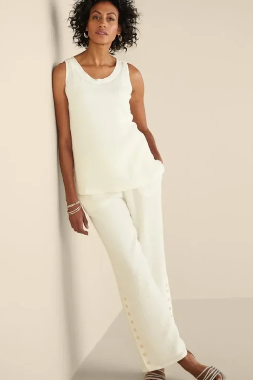 Breathable with a luxe drape, our lightweight Oceo Gauze has a naturally crinkled texture. Mix, match and pack no ironing needed. Scoop neck, high-low tulip hem with button accents. P.S. Also comes in a tunic, topper and wide-leg pants!