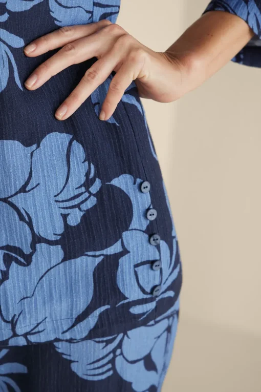 Breathable with a luxe drape, our lightweight Oceo Gauze has a naturally crinkled texture. Mix, match and pack no ironing needed. Boatneck, 3/4 sleeves and front button accents along the princess seams. P.S. Also comes in a tank, topper and wide-leg pants!