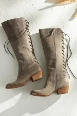 The chicest, most comfortable pair of waterproof boots we’ve ever tried. Waterproof fuji leather with a seam-sealed design keeps the weather out, while cushioning feet with Aqua Sofft technology. Adjustable, lace-up style fits narrow and wide calves alike, 13 1/2-16 1/2. Inside full zip for easy on/off.