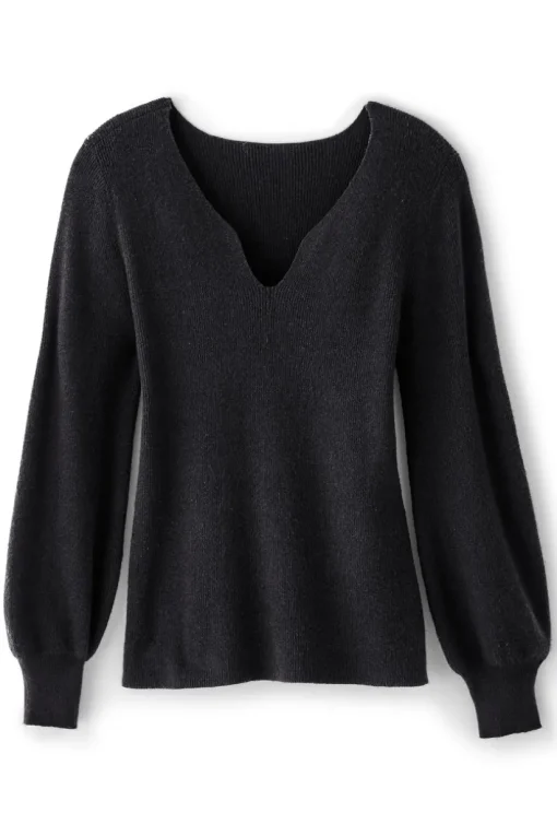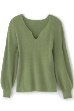 Everything about this sweater is so fresh, so now. It starts with a super-soft, micro-rib knit for the perfect touch of texture. The curved, split V-neck is so flattering, while blouson sleeves with slim ribbed cuffs bring all the drama.
