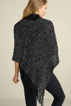 Turn on the shine in this sparkly knit poncho boasting easy-to-pair neutrals and flouncy fringe trim. It’s a great accessory for everything from attending a dinner party to going wine tasting. Where will you show off your shimmer?